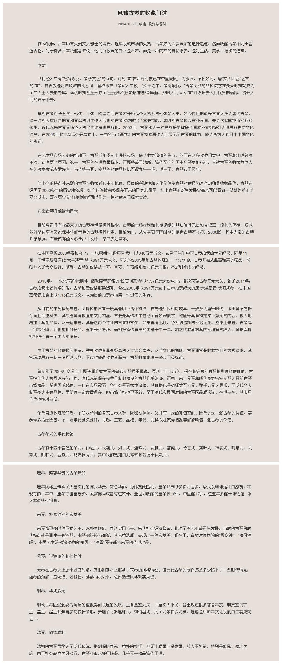 您现在的位置:主 页 > 文博快讯 > 风雅古琴的收藏门道